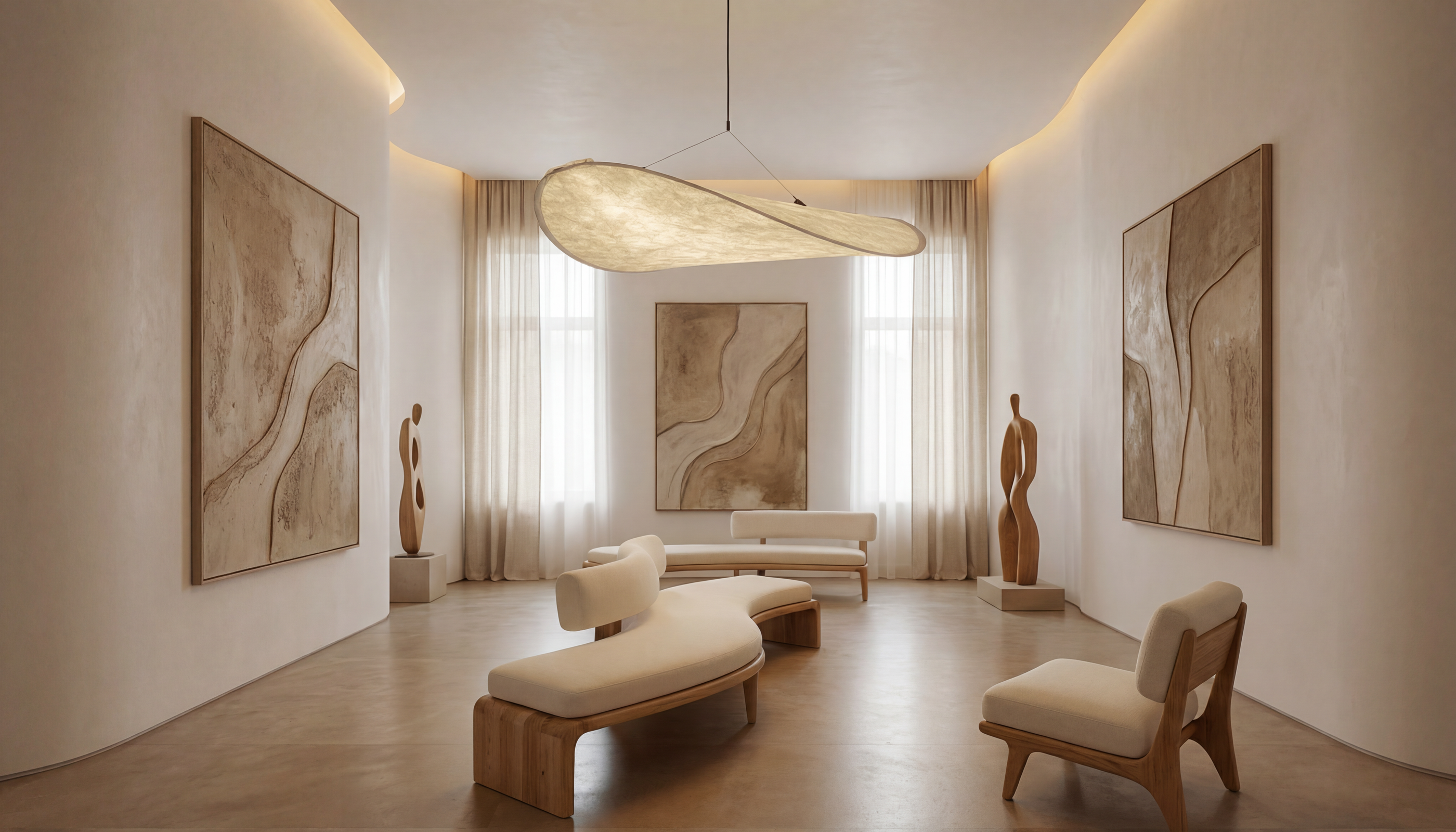 Ethereal geometry inspired by organic growth. A delicate balance of soft silhouettes and structured illumination, designed to bloom in the center of the modern interior.